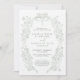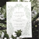 Primavera de fleur de lis estilo elegante, desenhado à mão, fez um convite de casamento com cheirinhas, folhas, guloseimas e borboletas. Em verde e branco monocromático, personalize com seus próprios detalhes de casamento e monograma no topo. Outras cores e itens correspondentes estão disponíveis ou podem ser criados por solicitação. © Desenho manual original e design por Sarah Trett para www.mylittleedenweddings.com no Zazzle.