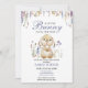 Celebre a chegada de um doce novo bebê com este adorável convite de chá de fraldas de temas macacos. Apresentando uma ilustração bonita de coelho rodeada de sotaques florais tanto na frente quanto no verso, esta encantadora design inclui a frase 'Um coelhinho está no caminho' e áreas personalizáveis para o nome de convidado de honra e todos os detalhes da festa. Perfeito para um chá de fraldas de primavera ou inspirado na natureza, este convite é fácil de personalizar e garantido para tornar sua celebração mais especial!