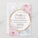 Celebrar as mulheres especiais da sua vida com nosso encantador convite a Brunch do Dia de as mães. Este convite, maravilhosamente desenhado, captura a essência do primavera com suas delicadas flores aquáticas em pinks macios e azuis sutis, perfeito para dar o tom a um belo encontro de brunch. Cada convite irradia calor e apreciação, apresentando um círculo ouro gracioso que adiciona um toque de sofisticação. Criado com amor, nosso convite imprimível é uma brisa para compartilhar. Quer você esteja hospedando em casa ou em um lugar quente, estes convites transmitem a mensagem sincera de honrar e celebrar a maternidade. Os motivos florais artísticos lembram um jardim sereno de primavera, acenando a amigos e familiares para se juntarem a um dia de comida deliciosa, risos e momentos memoráveis. Não é apenas um anúncio pitoresco para o seu evento de Dia de as mães, mas também serve como um guardião que as mães vão tesourar muito depois do dia acabar. Prepare-se para juntar, brindar e homenagear as mulheres incríveis que fazem diferença em nossas vidas com nosso Convite Brunch Dia de as mães - sua chave para uma celebração inesquecível.