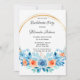 Espero que gostem destes Florais botânicos azuis-claros e laranja com uma estrutura geométrica dourada. Os produtos e convites correspondentes estão disponíveis.