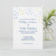 Estes convites de casamento impressos personalizados apresentam uma vibração retrógrada divertida com um design do estilo Moderno do século Médio. O asterisco atômico ou as formas de floco de neve decoram a parte superior e traseira desses convites em tons de azul e amarelo para uma aparência nova e divertida de Primaveras de Palma. Use os campos modelo para personalizar facilmente esses campos com suas informações. Tem mais informações que você precisa incluir? Selecione a opção PERSONALIZAR para adicionar texto adicional a estes convites.