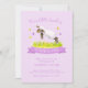 O primavera bonitinho convida, com uma pintura de aquarela fofa de uma ovelha bébé branca saltando num campo de flores com borboletas. Personalize com seus próprios detalhes de festa de aniversário. Um cordeiro bonito em um fundo do céu roxo. Outros artigos de carneiro bonitinhos correspondentes disponíveis. © Pintura única em aquarela e projetada por Sarah Trett para www.mylittleeden.com
