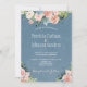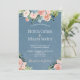 Convite de casamento moderno e rústico da boêmia, com primavera e pêssego de verão, cor-de-rosa-pincel, marfim e champanhe floresce em um fundo de chalkboard azul empoeirado. +++++++ O convite é adequado para casamentos de primavera ou jardim de verão ao ar livre ou no estilo rústico de jardim.