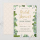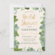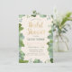 Este chá de panela personalizável apresenta uma borda ilustrada de flores verdes, cinzas e azuis com um fundo de cor creme (que pode ser alterado para seu gosto). O texto "Chá de panela" encontra-se em dourado (folha simulada), letra moderna de escrita. O nome da noiva e os detalhes do evento podem ser personalizados para seu evento especial. O verso é uma cor de creme correspondente (também alterável) com um padrão de quatrefoil de ouro sobreposto.