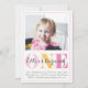 Este primeiro convite de aniversário cor-de-rosa e laranja é clássico e simples. Perfeito para uma primeira festa de aniversário.