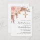 Rosa, ouro e flores, cor-de-rosa, rosas, erva-pampas e uma cruz de ouro. Personalize e adicione um nome e detalhes.