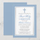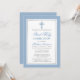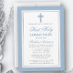 Elegante Convite de Primeira Comunhão Azul Claro e Prata com Cruz.