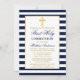 O Elegante Primeiro Convite da Comunidade com Cruz. Stripes Azul e Branco. Dourada Cruz.