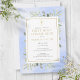 Com folhas de aquarela e um elegante crucifixo dourado, este convite moderno para a primeira comunhão de meninos pode ser personalizado com os detalhes da sua celebração especial. O verso tem um fundo azul manchado de aquarela correspondente. Projetado por Thisisnotme©