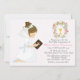 Este adorável convite da Primeira Comunhão mostra uma garotinha de cabelo castanho, vestida com um vestido de comunhão branco com véu e segurando uma bíblia. Do lado direito do convite está uma bonito coroa floral com um cálice e Eucharist. O fundo é um padrão listrado rosa macio, que se repete atrás. Elementos de coordenação disponíveis. (Alguns gráficos AMBilustrações ©2017)