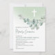 Celebre a Primeira Comunhão do seu filho com este convite católico, com folhas verdes e uma cruz branca. Perfeito para uma Primeira Comunhão. Espanhol/Espanhol: Celebra la Primera Comunion de tu hijo o hija con esta invitación.