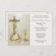 Apresentando nosso tradicional convite católico à Primeira Comunhão com Jesus sobre o Crucifixo, a Santa Espirita acima, Bíblia, Rosário e o Santo Eucarista. Fontes, textos e imagens podem ser modificados. O Chá de Rosas Shoppe também oferece coordenação entre Cartões Sagrados.