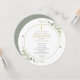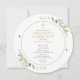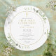 Com delicadas folhas em aquarela e um elegante crucifixo dourado, este convite circular de primeira comunhão pode ser personalizado com suas informações especiais, com um fundo de cor sage prateado no verso. Criado por Thisisnotme©