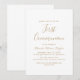 Este convite de primeira comunhão com caligrafia dourada delicada é perfeito para um evento religioso moderno. O design minimalista romântico apresenta uma tipografia amarela dourada champanhe encantadora e elegante em um fundo branco com uma aparência limpa e simples.