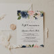 Este elegante convite à comunhão de caligrafia floral de inverno é perfeito para um evento religioso simples. O design apresenta belas flores azuis escuras, azuis, marinhos, rosa, pinceladas, douradas e folhagem verde pintadas manualmente, amontoadas em buquês elegantes.