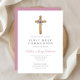 Convites Primeira Comunhão da Cruz Floral Rosa Boca-rosa