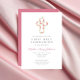Cartão de Convite de Primeira Comunhão de Cruz Floral Rosa Personalizado
