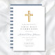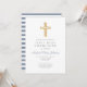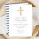 Convite Moderno da Primeira Comunhão de Blue Cross Boy. Parte do Pacote de Primeira Comunhão do Cruzeiro Dusty Blue Script Cross Boy com artigos de papelaria e acessórios de primeira comunhão.