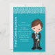 Você vai adorar este fundo especial com um garoto de desenho vestido para sua primeira comunhão com seu rosário e bíblia.