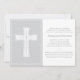 Este convite para a Primeira Comunhão, rapazes modernos e bonitos, apresenta uma elegante cruz branca e uma cinza de fundo. Personalize com os detalhes do evento.