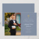 Foto personalizada de Dusty Blue Cross Convite à Primeira Comunhão. Parte do Pacote de Convite da Primeira Comunhão Dusty Blue Cross Boy com artigos de papelaria e acessórios de festa correspondentes disponíveis.