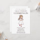 Celebre o dia especial de sua filha com este belo convite da Primeira Comunhão, com uma ilustração de uma garota sorridente em um vestido clássico de comunhão. Esta design elegante e sincera é perfeita para convidar a família e os amigos a juntarem-se à celebração sagrada. Personalize facilmente com o nome da honraria, os detalhes do evento e uma mensagem pessoal para criar uma manutenção exclusiva para este marco importante