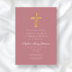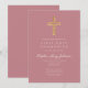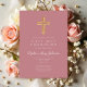 Cartão de Convite à Primeira Comunhão Personalizado Moderno Rosa Cruzado Religioso