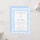 Convite paisley de Azul Suave com cruz decorativa e quadro. Personalizar para batismo, comunhão ou qualquer evento religioso especial.