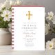 Personalizado Moderno Rosa Stripes Cruzando Menina Primeiro Convite Comunitário.