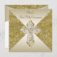 Dourado convite da Primeira Comunhão com elegante cruz de diamante de ouro em um belo fundo de ouro brilhante. Você pode personalizar facilmente este bonito convite da Primeira Comunhão de ouro adicionando seus detalhes de evento no tamanho e cor da fonte e na redação de sua escolha. Este é um design impresso sem diamantes reais, joias, brilho, etc.
