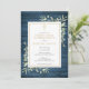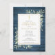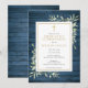 Com delicadas folhas de verdura em aquarela sobre um fundo de madeira rústica azul e um elegante crucifixo dourado, este convite de primeira comunhão sofisticado pode ser personalizado com as suas informações especiais. Concebido por Thisisnotme©