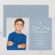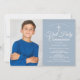 Elegante convite de primeira comunhão com delicada poeira de estrelas prateada, você pode personalizar com sua foto especial e informações do evento em texto sofisticado em um fundo azul poeirento. Projetado por Thisisnotme©