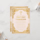 Este convite de primeira comunhão em ouro e rosa bege com um ar vintage, recomendado para uma menina, tem uma moldura ornamentada em folha de ouro falso com decorações barrocas elegantes sobre um fundo rosa bege. Acima do texto há uma cruz religiosa em ouro falso. Exceto a ocasião "Primeira Comunhão", que também está em ouro falso, todo o texto pode ser personalizado e tem uma cor dourada semelhante à moldura de ouro falso.