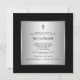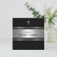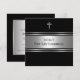 Convites de primeira comunhão preto e prata elegantes com listras pratas e cruz prateada em um fundo de cor escolhida por si. Este convite de primeira comunhão preto e prata é facilmente personalizado para o seu evento, adicionando detalhes do evento, estilo de letra, tamanho e cor da letra e texto. Este é um design impresso sem jóias reais, folha, etc.