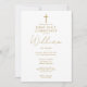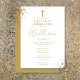 Este convite de primeira comunhão dourada elegante pode ser personalizado com suas informações em tipografia chic. Criado por Thisisnotme©