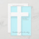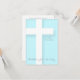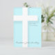 Cruz Cristã branca simples e grande com sombra branda sobre fundo turquesa pálido.Design no convite de cartão plano com textos para a Primeira Comunhão personalizar. Você pode facilmente alterar o texto (cor, fonte, tamanho e posição) clicando no botão personalizar. Correspondência de livros de hóspedes (cobrir do duro e caderno espiral).