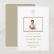 Celebre a Primeira Comunhão do seu filho com este convite elegante e personalizável. A design apresenta uma cruz realçada em ouro no topo, simbolizando a fé, e uma foto central com o enquadramento da sua pequena, fazer o cartão verdadeiramente pessoal. O fundo branco e o refinado texto dourado emprestam um aspecto limpo e sofisticado, enquanto a mistura de scripts e fontes serif adiciona um toque clássico. Perfeito por criar uma lembrança carinhosa dessa ocasião especial. B004