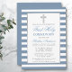 Convites Primeira Comunhão Silver Dusty Blue Striped