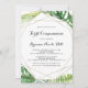 Esse primeiro convite de comunhão tropical de destino geométrico é perfeito para um evento religioso moderno. O design apresenta palma verde-aquarela pintada à mão e folhas de bananeira bem organizadas em belos buquês, enfeitando um quadro geométrico dourado.