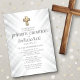 Um design moderno, contemporâneo, para o seu grande dia! O fundo geométrico branco e a simples tipografia dão a esta design uma elegante vibração elegante.