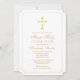 Perfeito para o primeiro convite da sua filha, esta design é simples e pura com uma cruz de ouro falsa em um fundo branco com uma fina borda de ouro, Abaixo estão os detalhes da sua celebração para você personalizar em uma tipografia moderna de escrita de ouro falsa. A parte traseira do cartão tem uma cruz de ouro em branco. Projetado apenas para você pela artista ©Susan Coffey.