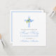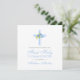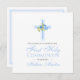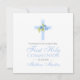 Perfeito para o primeiro convite de comunhão do seu filho, esta design é simples e pura com uma cruz azul acentuada por rosas azuis. Na frente está o nome do seu filho em uma tipografia moderna em azul. Na parte de trás do cartão está uma pequena cruz correspondente e os detalhes de sua celebração para você personalizar. Projetado apenas para você pela artista ©Susan Coffey.