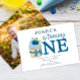 Convite para primeiro aniversario, com a palavra "UM" na tipografia moderna e caprichosa, com um cupcake de mirtilo ilustrado à mão que substitui a letra "O". O design é simples e minimalista, fazer perfeito para os pais que apreciam uma estética limpa e moderna. O verso do convite pode ser personalizado com uma foto do seu filho, fazer-o um convite verdadeiramente único e personalizado.