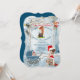 Um fundo de inverno com neve nas cores azul verde claro e Papais noeis vermelhos brilhantes nos nossos animais favoritos, um carrinho e a letra um