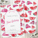 O primeiro convite de aniversário da doce melancia de aquarela doce e moderna. A parte traseira apresenta um padrão de melancia correspondente para uma ajuda extra de delícia. Personalize o texto para se adequar à sua celebração. Arte original de Nic Squirrell
