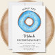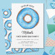 Está planejando a primeira festa de aniversário de um menino? Este convite de festas de aniversário fofo é decorado com rosquinhas azuis e diz "Senhorita Rosquinha". Tem um padrão de rosca no verso. Facilmente personalizável. Original Watercolor © Michele Davies.