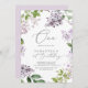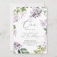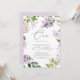 Este convite de 1º aniversário russo para lilás é perfeito para primavera ou festa de aniversário de verão. A romântica e elegante design floral apresenta flores lilás roxas de aquarela com uma sensação de jardim boho country.