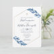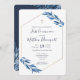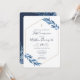 Cartão de convite Elegante e moderno da Primeira Comunhão. Anúncio clássico Elegante azul para a Comunidade com uma bela folhagem azul de aquarela