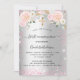 Um convite moderno, na moda e glamouroso para uma Primeira Comunhão. Um fundo metálico prateado falsa com brilho falso rosa, faíscas e florais cor-de-rosa. O nome é escrito com um moderno estilo escrito à mão. Personalize e adicione seus detalhes.