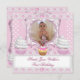 Primeiro primeiro aniversario de aniversário, uma festinha, Cupcakes cor-de-rosa, brancos, cor-de-rosa, bolinhas Arco Foto. A classe elegante do bebê, sempre muda de idade. Convites de aniversário de festa Modelo